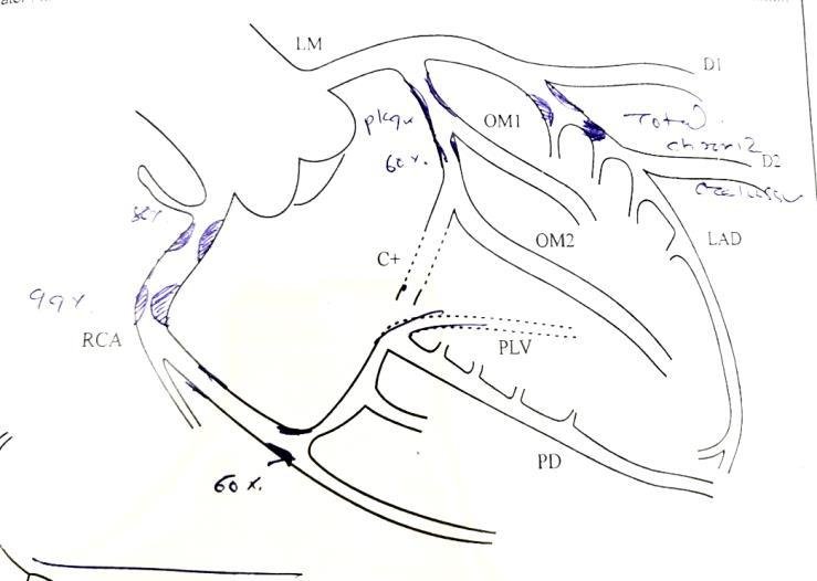 • Triple Vessel Disease (TVD) with culprit RCA lesion, causing ischemic bradycardia